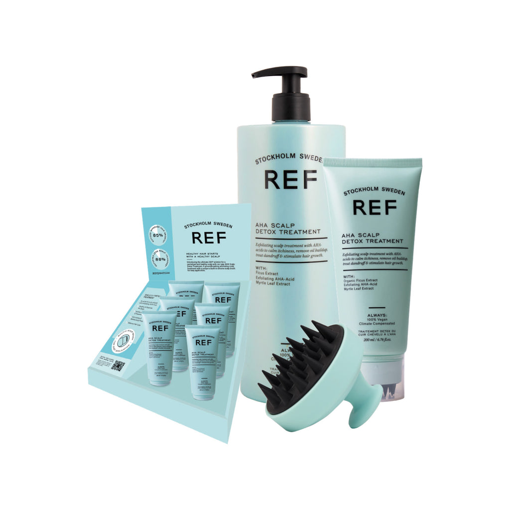 Introducing the ultimate 360° solution for a revitalized and healthy scalp with the new AHA scalp detox treatment. INCLUDES AHA Scalp Detox Treatment 200 ml x 6 AHA Scalp Detox Treatment 1000ml x 1 pcs AHA Detox Treatment Scalp Brush Desk Display